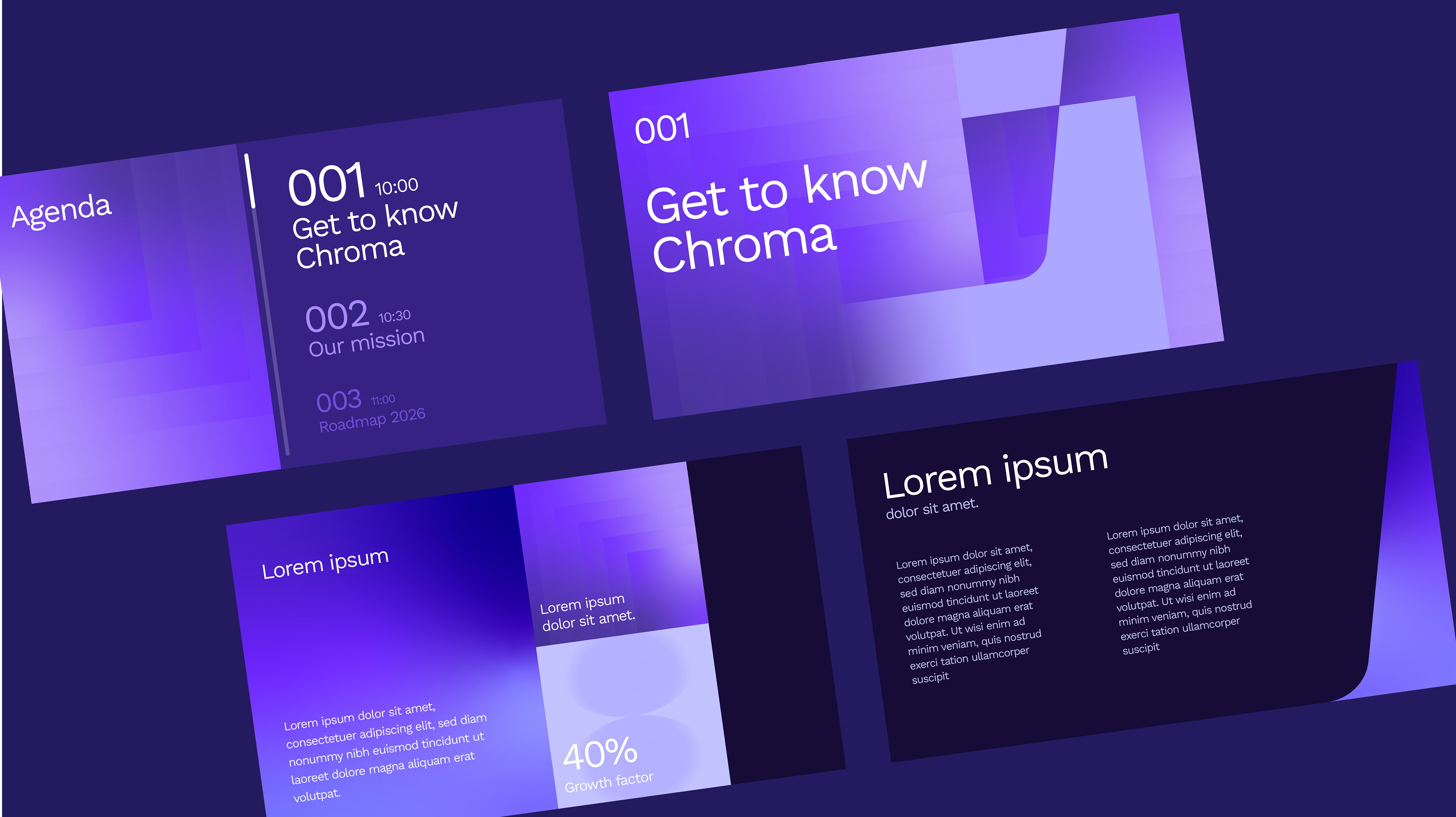 Thew project started with creating a complete set of gradient-based patterns, icons and other graphic assets that can be used in different surfaces. Chroma aims to build possibly the most simple, yet user friendly surface, so we challenged the simplicity with a dynamic, vibrant and almost echoey look. With its vivid colors, bold gradients, and playful shapes, the design system of Chroma wishes to build trust with users to become their main control panel for subscriptions and put the service to the map, making Chroma eventually a must-download essential app. As for a startup, the next step after establishing the main visual rules was to build a convincing Powerpoint/Keynote template to win trust of users, collaborators, investors and companies.