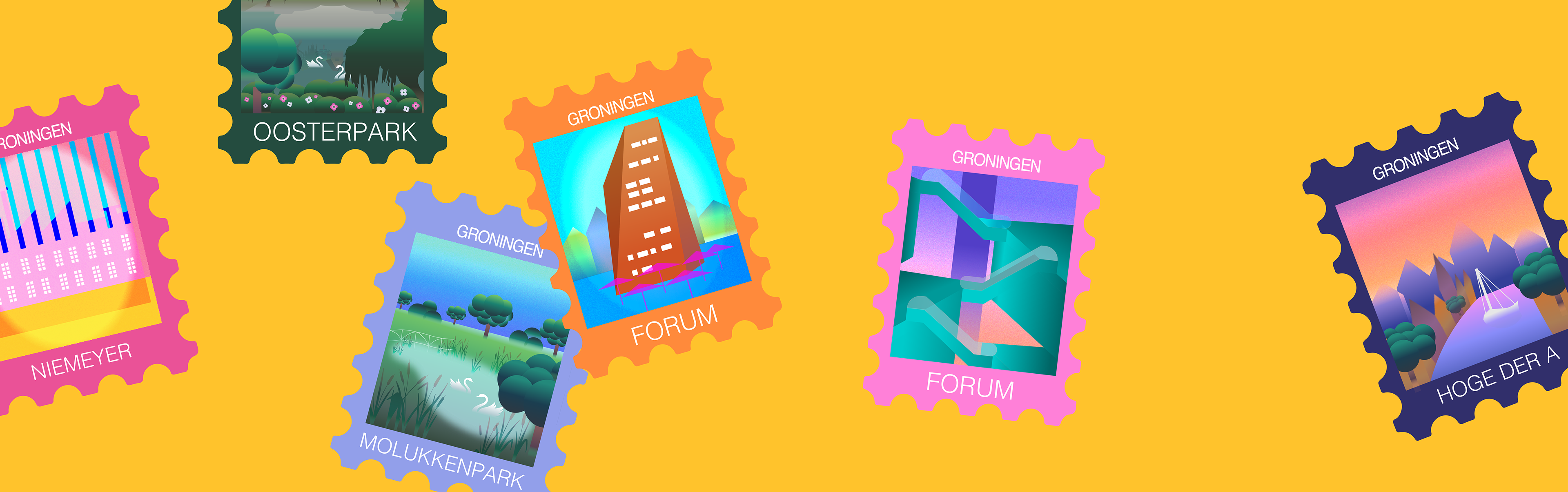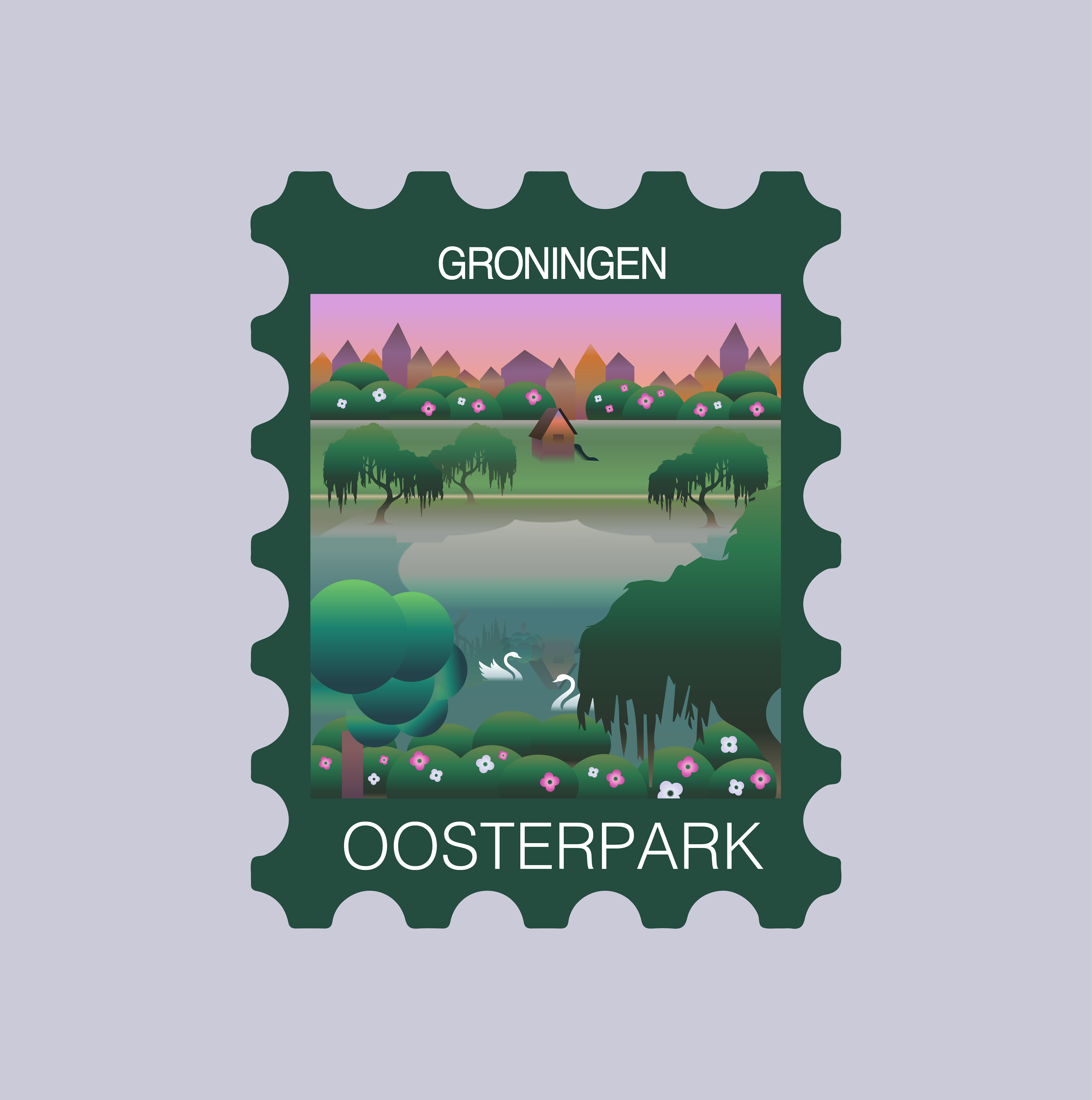 The stillness and wild color choices were selected to abstracify the personally solidified, last kept view about Groningen, rather than make a biased statement on how these locations should be observed.