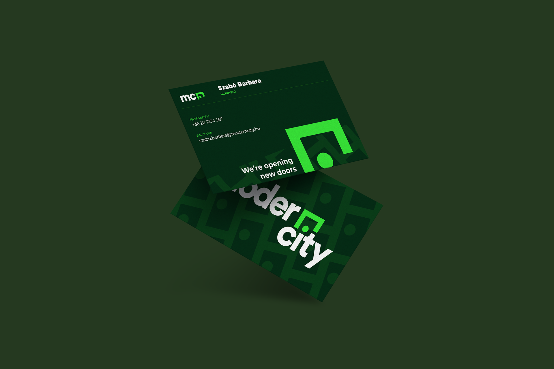 ModernCity is a Debrecen based property management and housing developer company. Their purpose is to redefine living in a Middle-European town by providing modern and sustainable housing focusing on students, newlyweds and families. My vision is meeting their goals by approaching simplicity and modernity through a vivid visual communication.